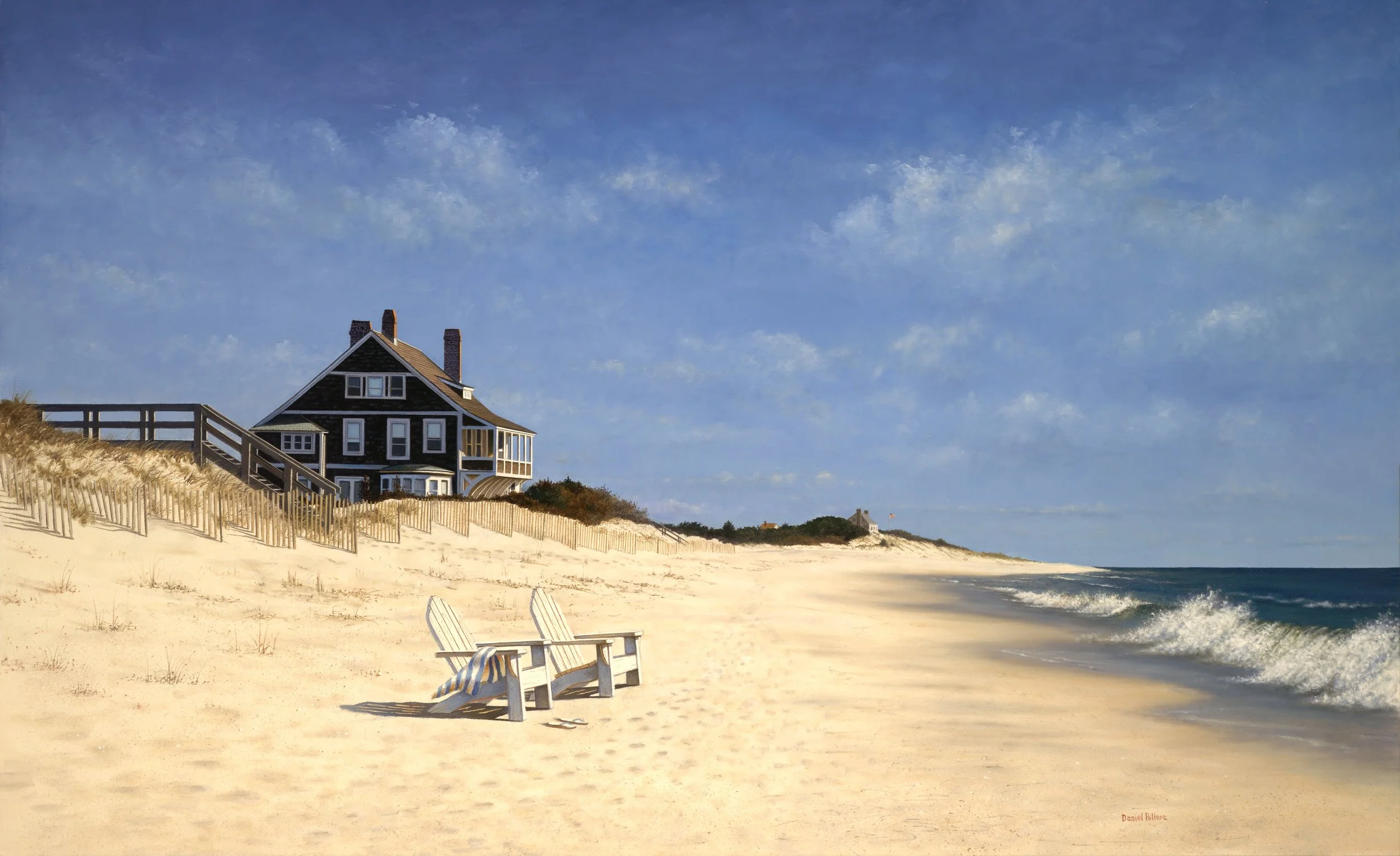 Mr. Pollera’s work has been recognized by a one man exhibit at the Long Island Museum of Art and inclusion in exhibits at numerous galleries. His paintings were recently added to the collections of the Parrish Art Museum in Watermill and Guild Hall Museum in East Hampton. His realistic paintings of Long Island are recognizable by his many admirers for their composition, light, and sense of peace. Although Daniel is primarily self taught he worked with Frances Norris Streit, a portrait and mural artist, assisting her on a 14’ x 30’ historical mural for the Roslyn Savings Bank. He also studied with Everett Molinari, a well respected President of the National Mural Society.