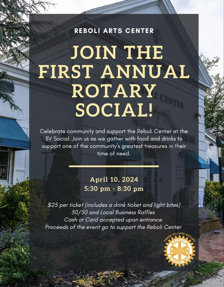 Join the first ever Rotary Club social at The Reboli Center! Tickets can be purchased at the door. Proceeds from ticket sales will be donated to The Reboli Center so we can make needed renovations to our historic building. We look forward to seeing you there!